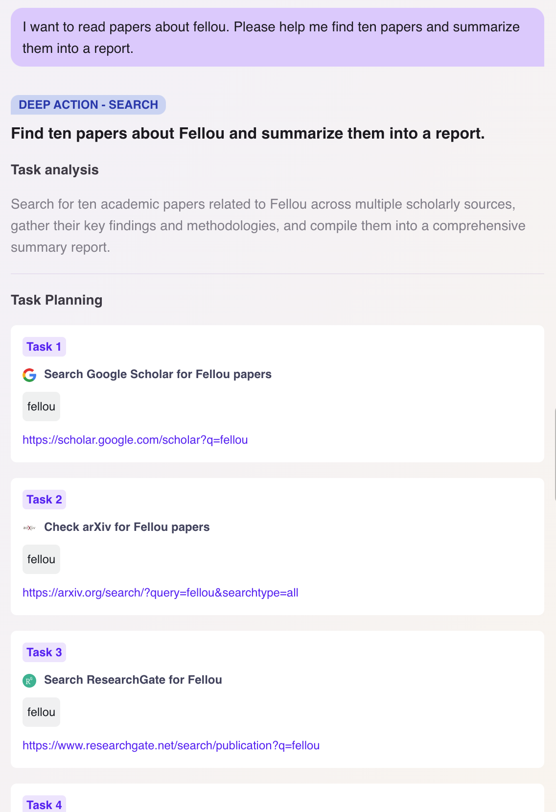 직접 사용해 보니, 주요 기능은 workflow와 deep search, report 작성입니다.