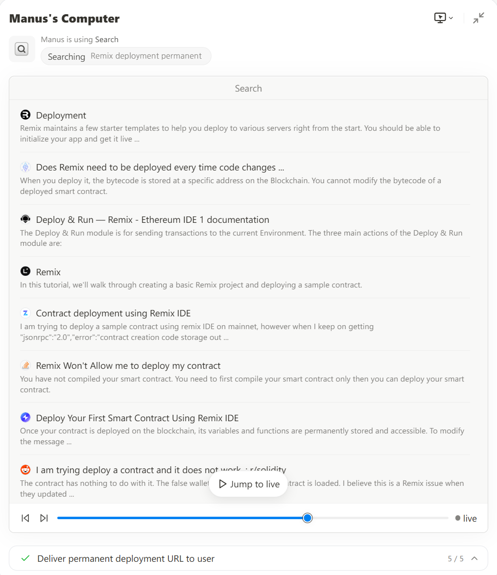 Manus는 특이하게 작업 과정을 log파일이나 진행과정으로 보여주는게 아니고, 정리해서 replay 형태로 제공을 해 주고 있습니다. 그래서 어떤 곳에서 어떤 작업을 했는지 직관적으로 볼수 있습니다.